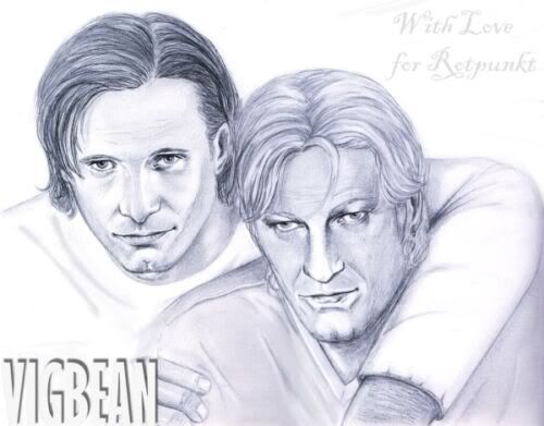 Sean slides his hands under Viggo’s sweat-shirt, lifting it off, and Viggo does the same for him. Mouths locked, they sink to the carpet and the flickering screen illuminates a passionate love-scene, which the VigBean girls would gladly donate body parts to watch.
